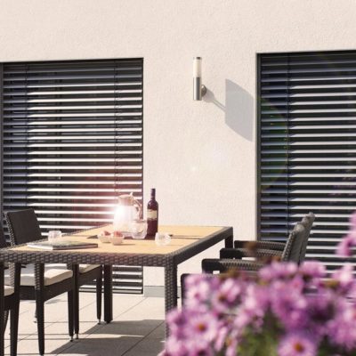 WAREMA Neubau-Aufsetz-Außenjalousien werden gemeinsam mit dem Fenster eingebaut. Dabei integrieren sie sich unauffällig in die Fassade und lassen sich hervorragend mit WAREMA Neubau-Aufsetz-Rollläden kombinieren. Ein optimierter Kastenaufbau reduziert den Lärmpegel von Draußen und verbessert die Schallschutzwerte deutlich. Damit gehören die, zusammen mit dem Fenster zu montierenden Systeme, zu den leisesten am Markt.